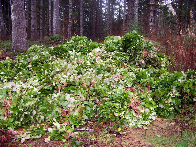 Salal left behind by brushpickers. I hope it does not go to waste.