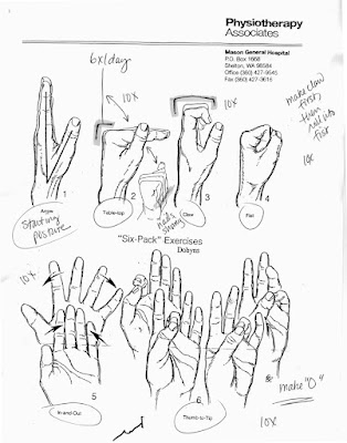 I am going to scan my physical therapy instructions so people who can not afford physical therapy will know what they need to do. I could not find instructions like this online when I searched. I would still recommend seeing a physical therapist if you can at all afford it and if you can actually find out what the cost is going to be up front. Click on the images to enlarge them.