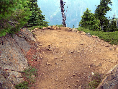 When the jogger dude passed my dog, who was tied up well off the trail, she snarled at him. She can read people pretty well and she did not like him. The man, as he passed me made a snide remark that I did not quite catch but it sounded something like, “it would be better if you got all the way off the trail”. But as he was making his remark his wife was yelling back to him and me, something about men not having balls. I think she was trying to embarrass him after he had pissed her off by yakking on his cell phone. I told the man that I had to rest there because my dog was too hot. The woman continued to yell stuff that I did not fully understand but I took it to be friendly yelling. It was all very confusing and I did not fully realize what had transpired until I got back to the trailhead and saw the nasty comment the man made in the register. The comment said “if dogs can run free why I can’t?” Okaaaaaaaaay, number one, my dog was not running free, she was leashed both times he passed me, number two, mister baby boomer jogger dude does not own the entire mountain, number three Mount Jupiter is an insane place to jog. One tine slip on the upper ridge and you're dead meat. I did not fully realize they were jogging until I saw this note. It never entered my mind that they were jogging on Mount Jupiter. I had no idea that people would jog on such and exposed and narrow trail. Perhaps if they had been wearing ultra cool baby boomer jogging suits I would have realized they were joggers. But they were from Forks, so they probably didn’t know how to dress up properly. Perhaps they should take some fashion tips from the folks in Aberdeen. Forks is one of the few towns that a Sheltonian can look down on. That B.S kind of put a damper on my mood as I drove back but more on that later.