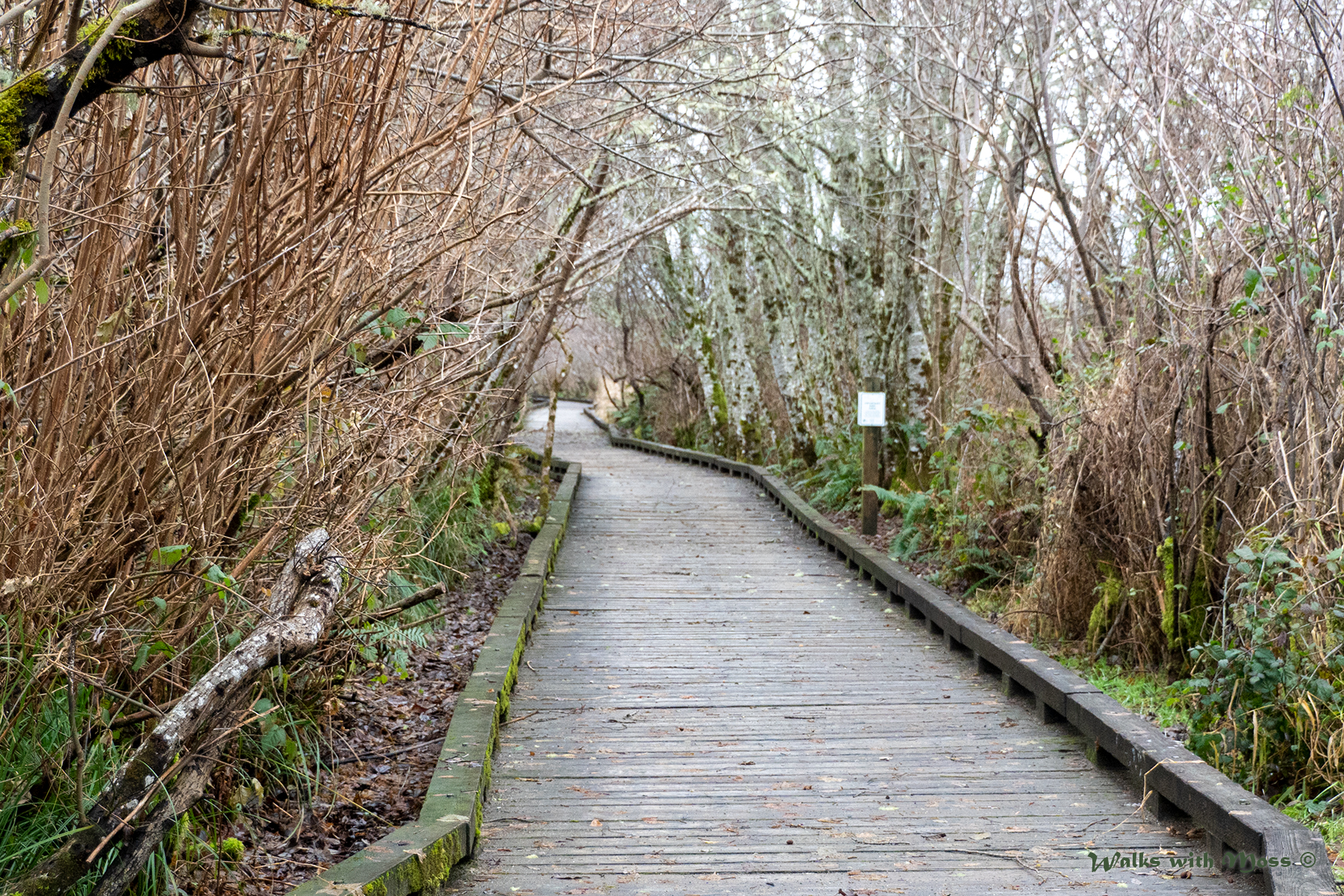 The Sandpiper trail is a short walk on a boardwalk. It starts out by going past a bunch of rickety old airplane hangers before it goes into the swamp and turns into a boardwalk.